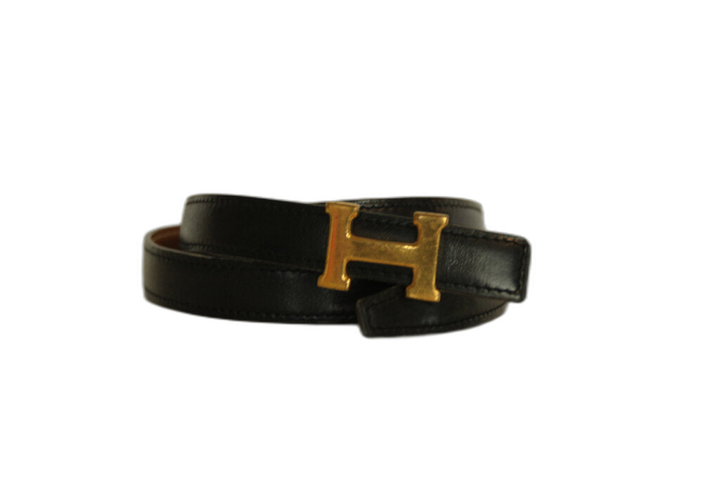 Hermes Vintage Constance "H" Belt - Black W/ Gold Buckle- 75cm