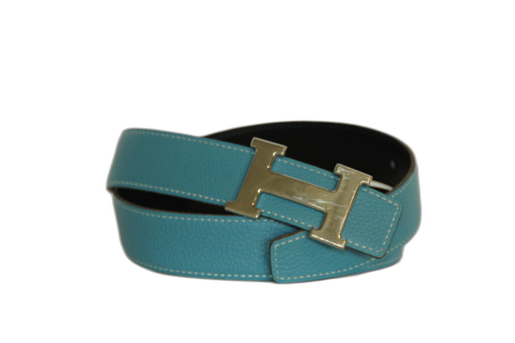 Hermes Vintage H Belt In Blue- Reversible- 80cm