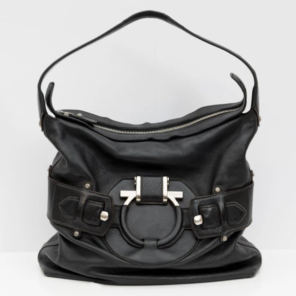 Salvatore Ferragamo Black Leather Hobo Bag