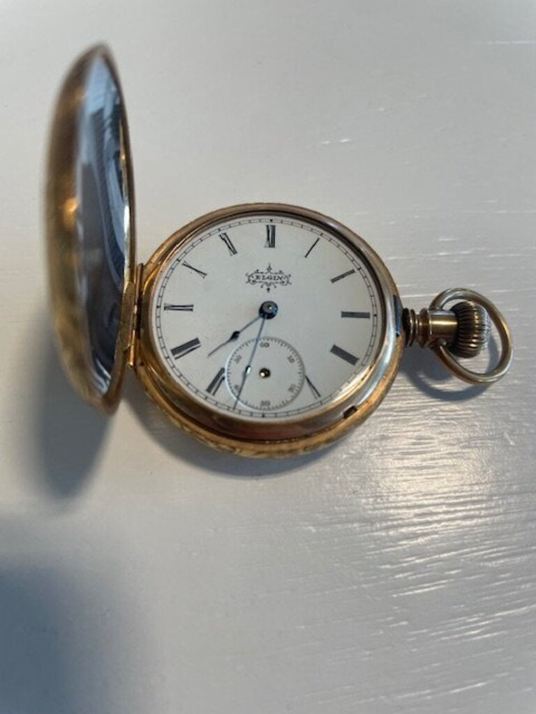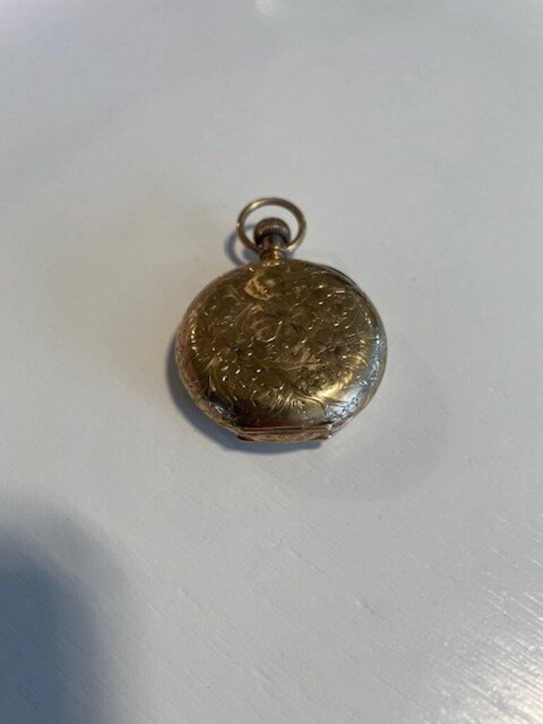 This exquisite 1878 Elgin National Watch Co. pocket watch is a remarkable piece of American history with a low serial number of 551119. Crafted with a beautifully ornate gold-filled hunter case, this timepiece features a pristine white porcelain dial adorned with classic Roman numerals and a charming sub-seconds dial at the 6 o'clock position. Although it is not running and being sold for parts or as a display piece, the vintage patina adds to its character, making it a perfect project watch for enthusiasts or an exceptional addition to any collection. This watch exemplifies the fine craftsmanship and rich heritage of early American watchmaking.
