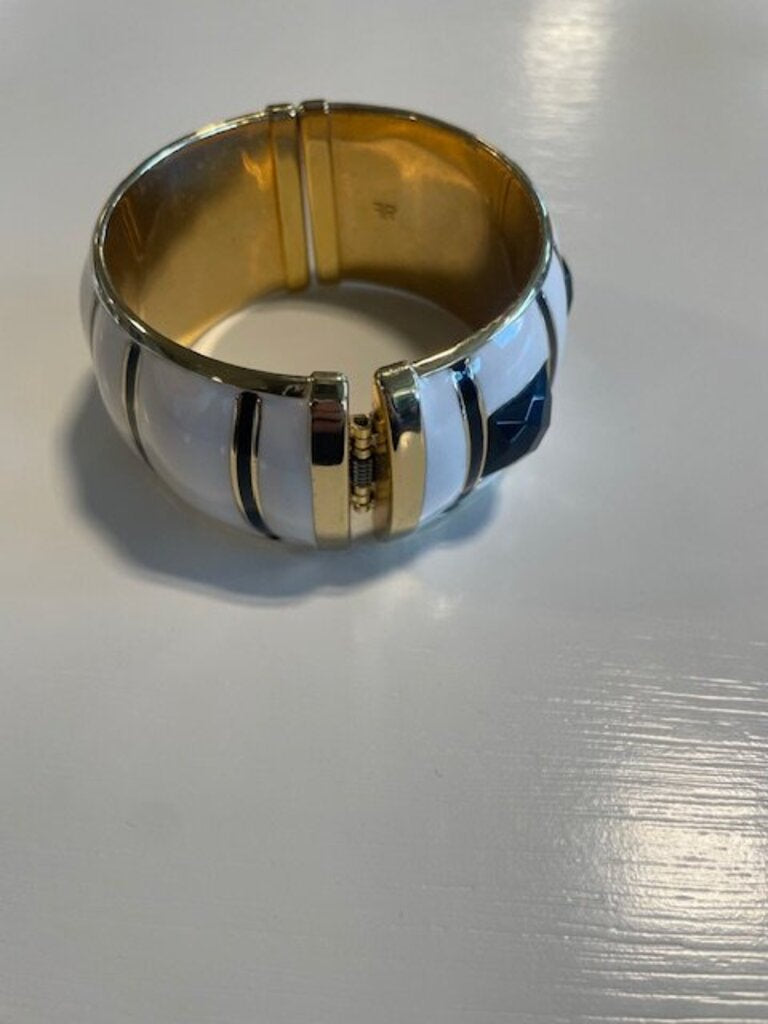 Freida Rothman Gold White Black Hinged Bangle Bracelet