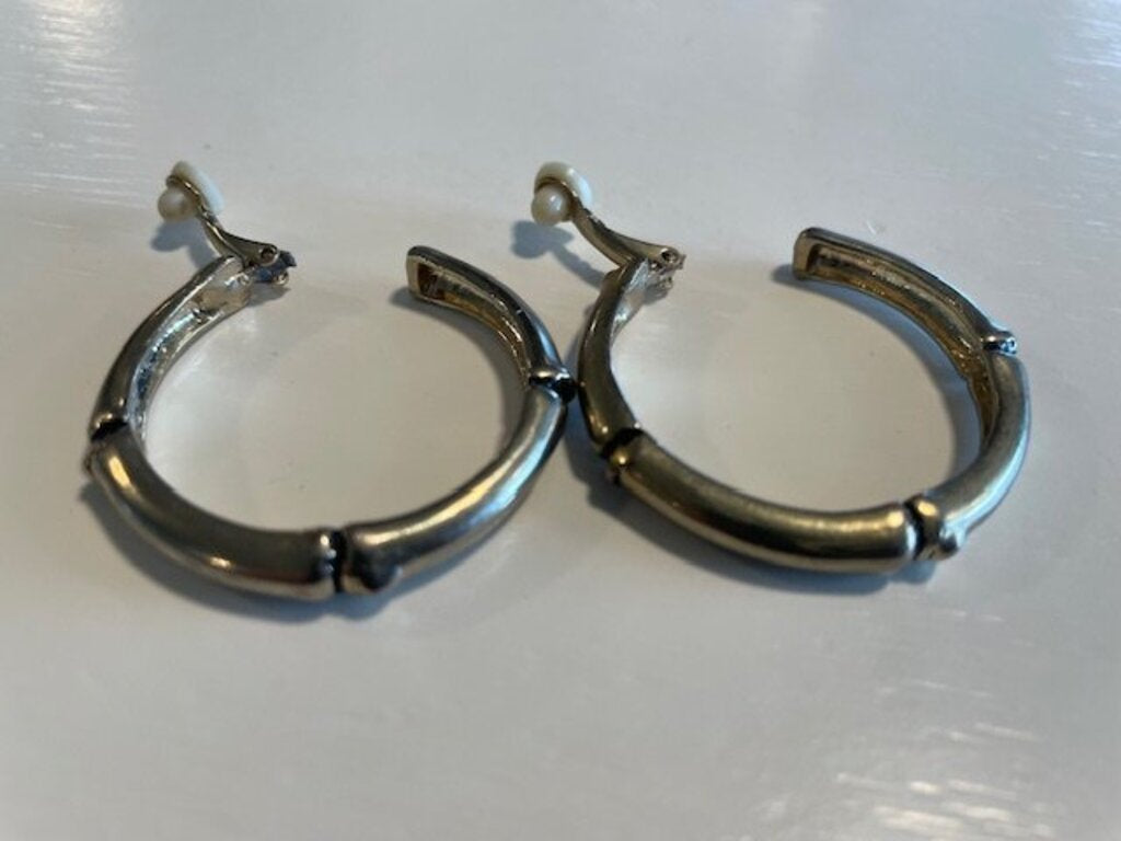 Vintage Bamboo-Style Gold-Tone Clip-On Hoop Earrings