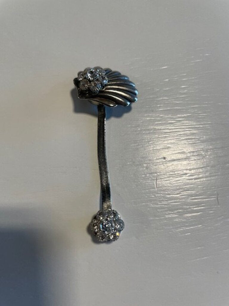 Vintage Style Silver-Tone Scallop Shell Crystal Drop Clip
