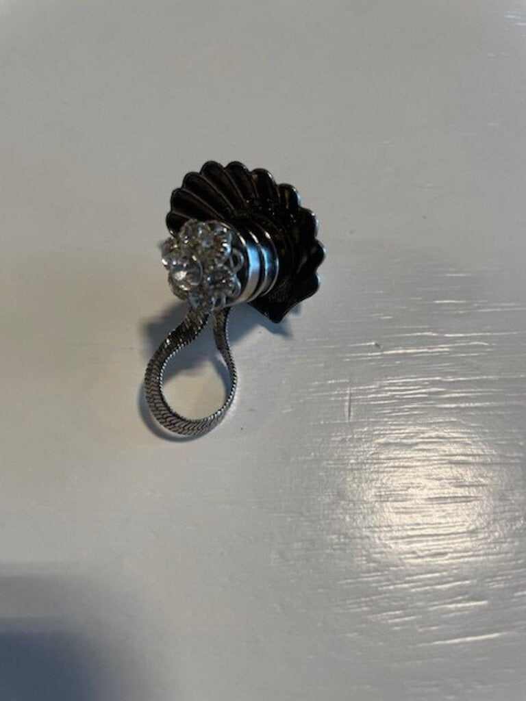 This stunning Vintage-Style Clip showcases a polished scallop shell motif beautifully complemented by a dazzling crystal cluster. The design features a flexible snake chain leading to an exquisite crystal flower drop, embodying a perfect blend of Victorian-inspired nautical aesthetics and modern practicality. Its innovative dual-magnet system offers a fabric-safe alternative to traditional brooches, allowing for effortless attachment to scarves, coats, or hats without damage. This accessory is ideal for those seeking to elevate their ensemble with a touch of coastal glamour and unique craftsmanship. Condition note: without ever poking a hole in the.