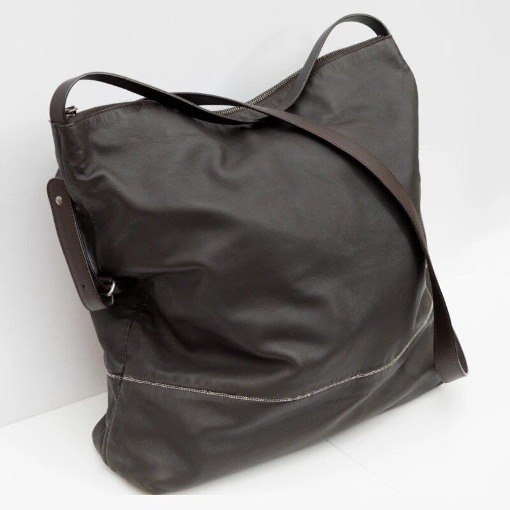 The Brunello Cucinelli Slouch Leather Handbag is a luxurious accessory that embodies effortless elegance, featuring soft, supple leather that drapes beautifully. With its relaxed silhouette and ample space, this handbag is perfect for everyday use, while the sophisticated design adds a touch of refinement to any outfit.