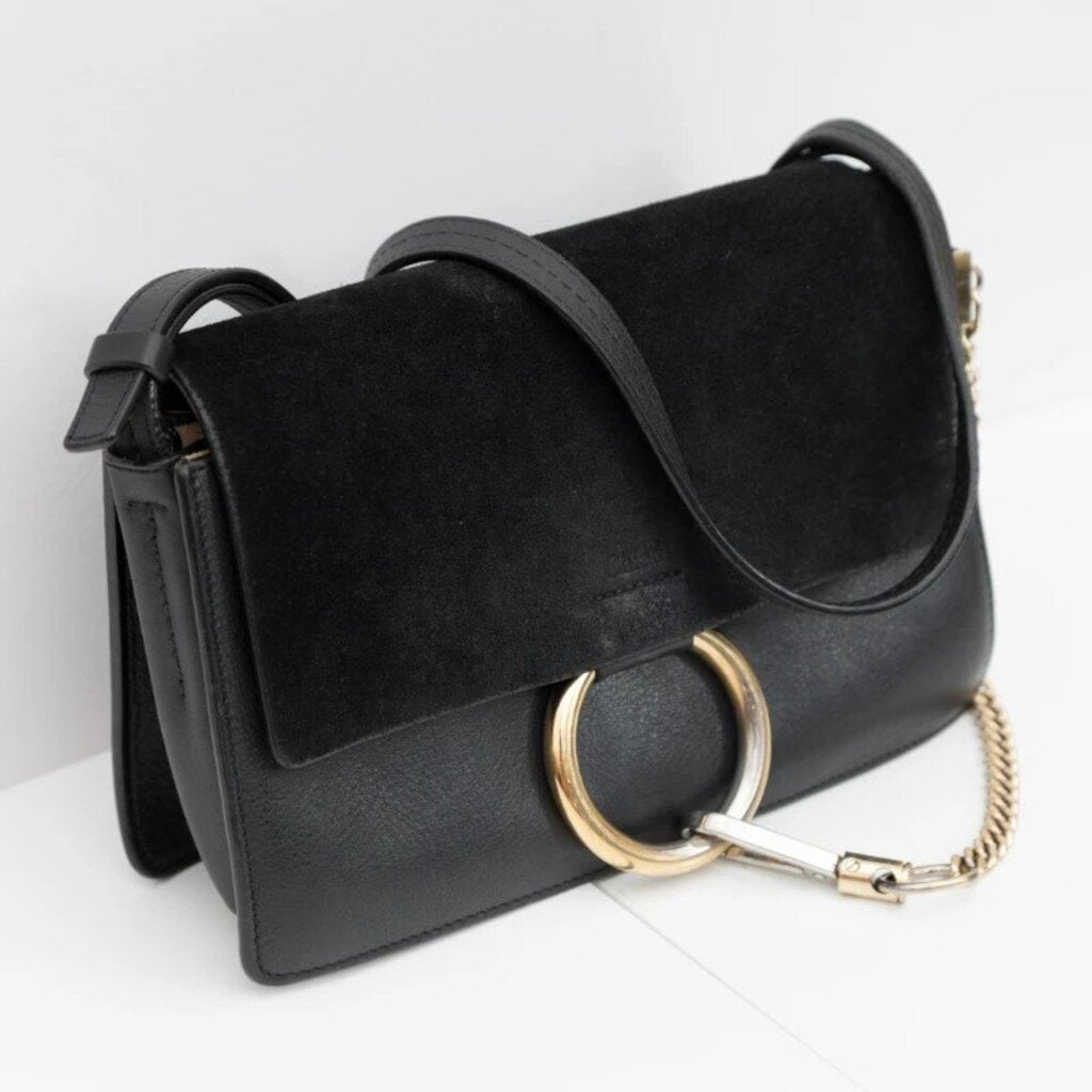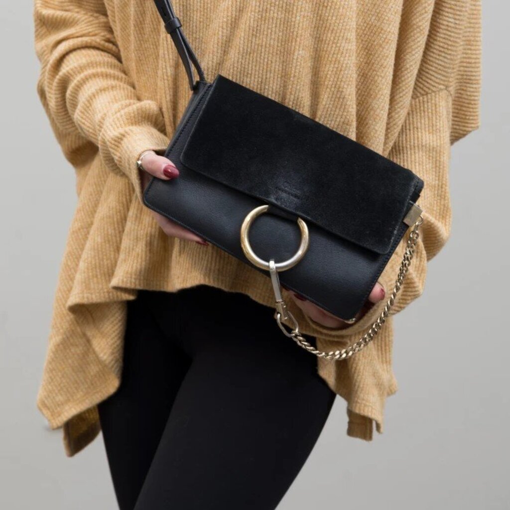 The Chloe Faye Black Suede Leather Crossbody Bag is a chic and sophisticated accessory, known for its luxurious suede texture and signature ring hardware that adds a touch of elegance. With a versatile design and spacious interior, this crossbody bag is perfect for both casual outings and more formal occasions, making it a must-have addition to any wardrobe.