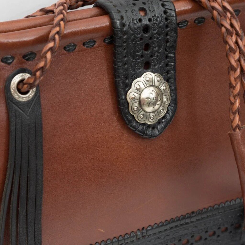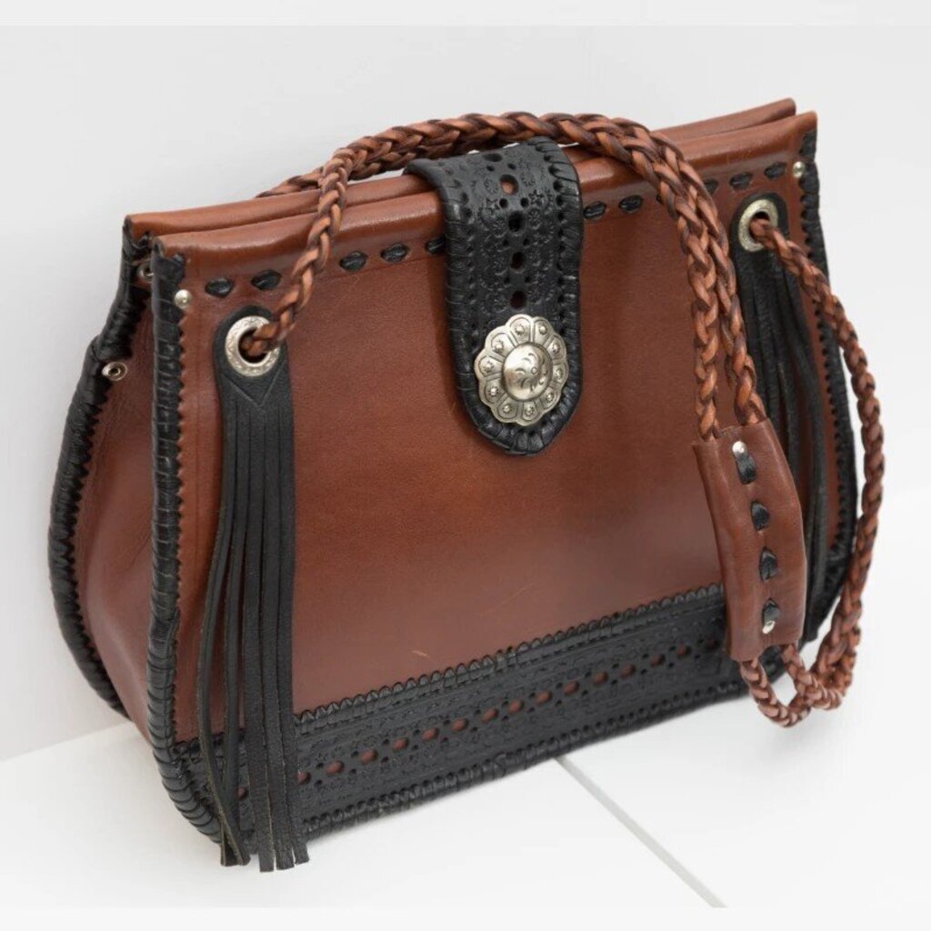 Leather 2 Tone Handbag W/ Fringe From Spain