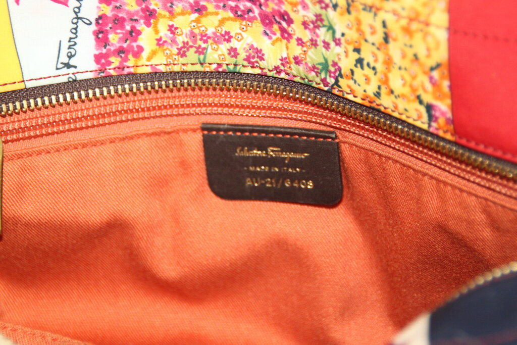 This stunning Salvatore Ferragamo Animal Print Tote features a vibrant array of colors in durable nylon, elegantly accented with rich brown leather trim. Perfect for adding a touch of flair to any outfit, this spacious tote provides both style and functionality—ideal for day-to-day use or outings.